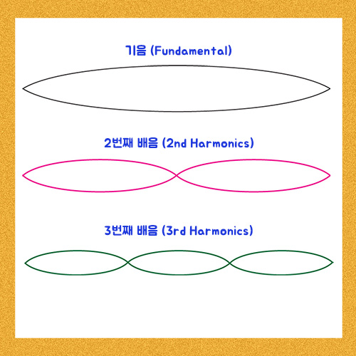 여기서 가장 크게 진동하고 가장 진동수가 적은 것이 기음(Fundamental)이다.