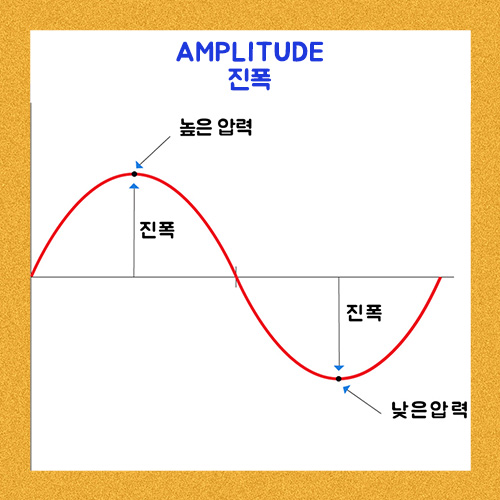 진폭은, 위 다이어그램에서 세로축을 말한다. 압력의 변화이자 진동의 크기다. 최대는 높은 압력(위로 올라가서), 최저는 낮은 압력으로(아래로 내려간다)