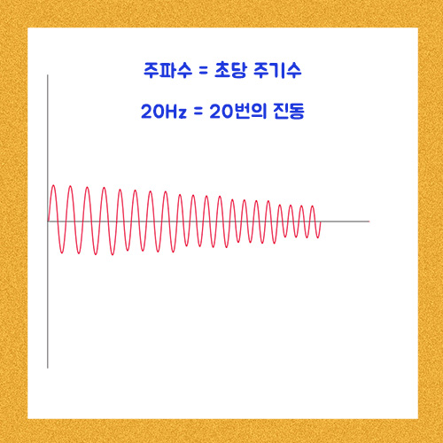 예를 들어, 저음인 20Hz, 60Hz 와 같은 경우는 1초당 20번, 60번 진동을 한다.