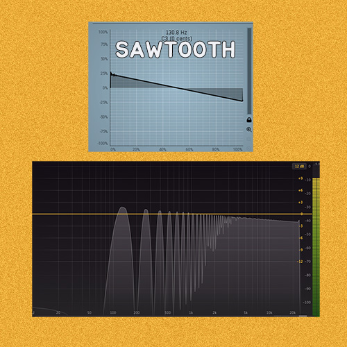 Sawtooth 파: 그냥 Saw 파라고 부르기도 하며, 홀수 배음과 짝수 배음이 동시에 존재한다. 이런 배음들이 서로 맞물리게 되면서 감소하게 되어, 점점 내려가는 모양을 나타내게 된다. (위상과 관련)