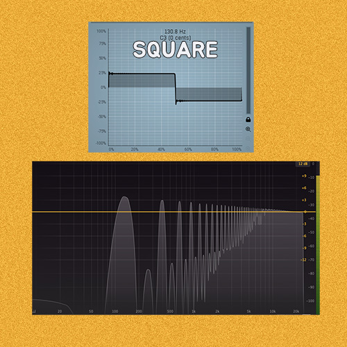 Square 파: Pulse 파라고 하며, 홀수 배음이 존재하는데, Triangle 파와 다른 점은 배음의 볼륨 차이다. 보면 Triangle 파 보다 배음의 레벨이 크다는 것을 알 수 있다.