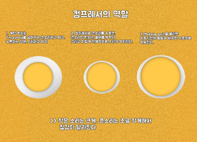 "Threshold를 넘어가는 소리는 다 누른다." 볼륨 값을 정해준다. 그리고 그 볼륨값을 넘어가는 소리가 있다는 걸 감지할 때만 컴프레서가 작동하게 된다.