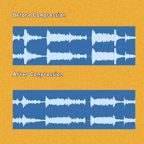 공장에서, 컨베이어벨트를 타고 어떤 물체가 지나갈 때마다 어떤 기계가 그 물체를 쿵쿵 내리찍으면, 그 물체가 압축이 되어 납작해지는 것을 보신 적이 있을 것이다. 컴프레스는 압축을 한다는 의미로, 음향에서는 컴프레서는 소리를 눌러버린다는 뜻으로 사용된다.