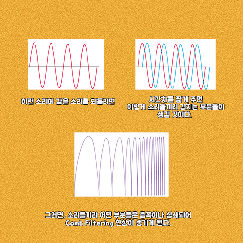 그래서 위 그림처럼, Comb Filtering 현상이라는 특이한 효과를 주게 된다.
