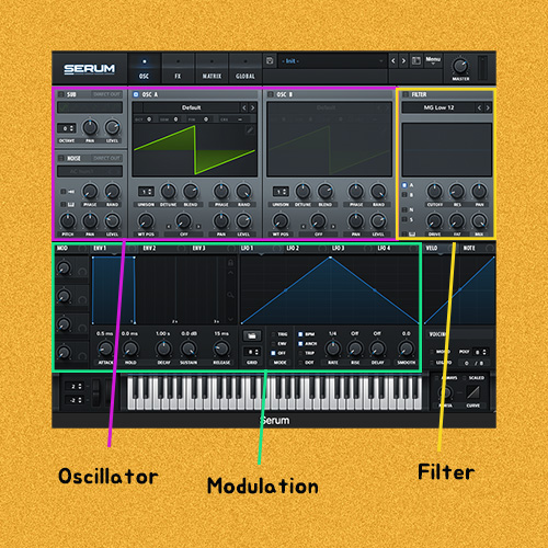 요즘 가장 자주 사용이 되는 Wavetable Synth 중 하나인 Serum으로 Synth의 구조를 살펴보자.